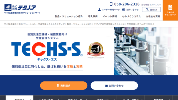 ここでは進捗・納期管理の強化を可能にする生産管理システム「TECHS-S」の機能や導入事例などを紹介しています。